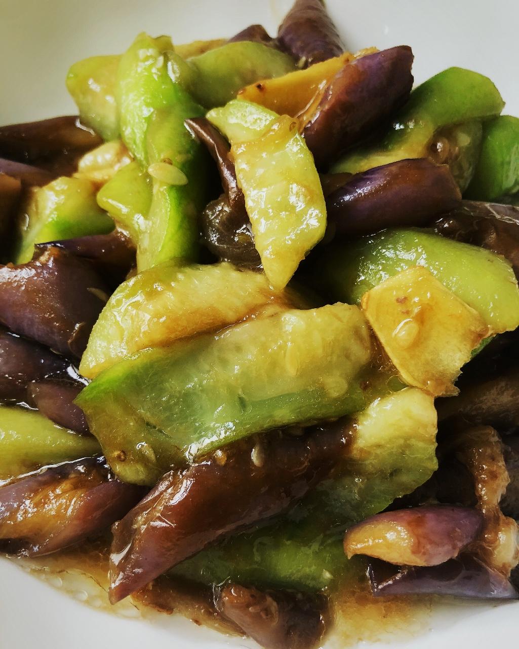 剩了两根小丝瓜和两根小茄子,没想到却是惊艳的搭。没放豆瓣酱,加了点儿生抽和蚝油,也是棒棒哒😛😋