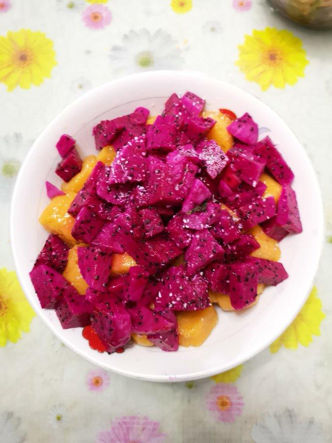 什么材料都没有,就用了火龙果来配。