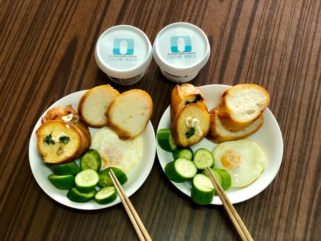dreamv 做过 早餐•2018年7月23日 解锁了法棍的正确吃法以后,早餐体验又往上迈了一大步!一种是椰子油煎后撒少许糖,因为我家不能吃蔗糖所以用了代糖,如果先放黄糖烧微焦后再煎更香甜。另一种是咸口的黄油蒜蓉法香的蒜香法棍,今天早上偷懒没有切碎,味道不差的。忙忙碌碌结果忘记煎火腿了~🤣 #早餐•2018年7月23日# 2018-07-23