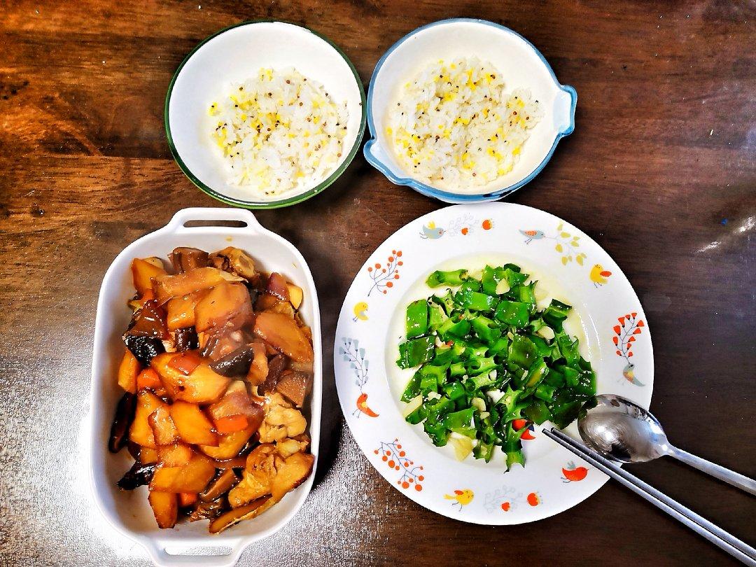 云深深深深 做过 午餐•2018年7月31日 #午餐•2018年7月31日#和娃的午餐,香菇土豆胡萝卜洋葱烧翅根,蒜蓉四棱豆。米饭是加了藜麦和玉米碴一起煮的,人少菜数目少,我的目标就是一道菜里尽可能的丰富食材。 2018-07-31