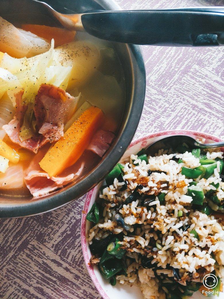 蔬菜汤和炒饭