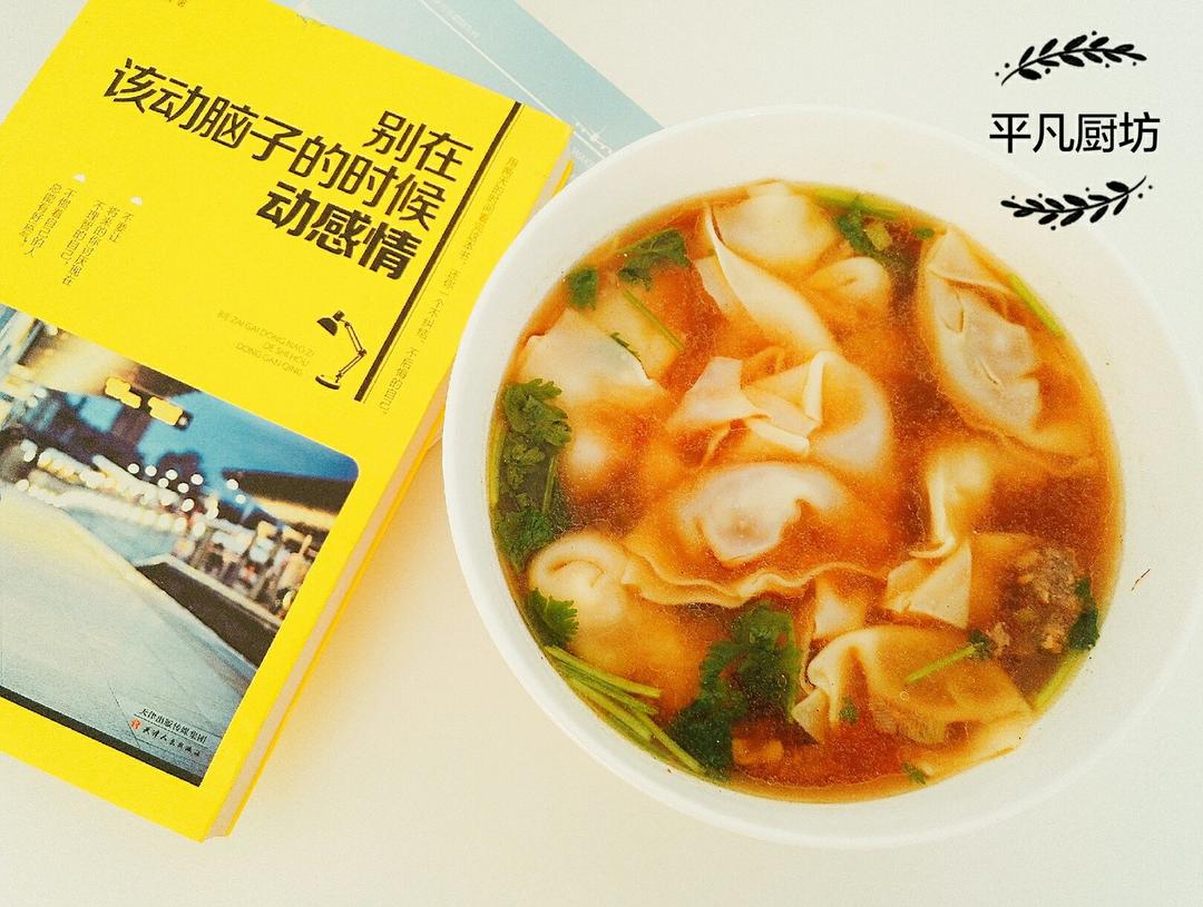 馄饨是猪肉大葱馅的,说实话吃着有点热还有点腻!