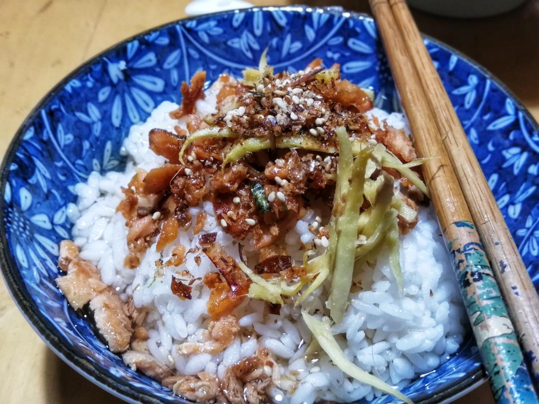 日式三文鱼茶泡饭,配料丰富,太美味了!