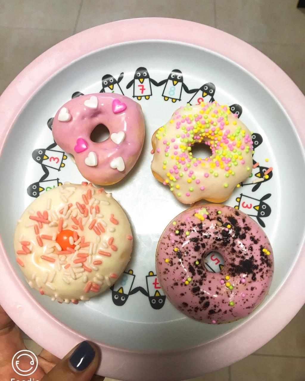 第一次做了六个,第二次做了十二个,巧克力化多了,不浪费,都给挤上去,变成了涂鸦甜甜圈。哈哈哈哈