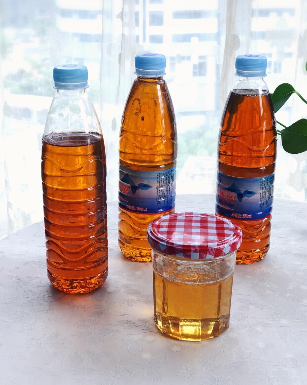 最前面的是木糖醇熬的,多加了15g水,会不会结晶,我也想知道。颜色深的3瓶是白糖熬的