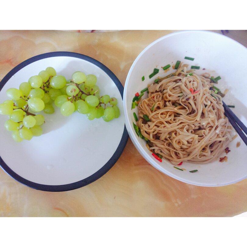 荞麦拌面 + 葡萄