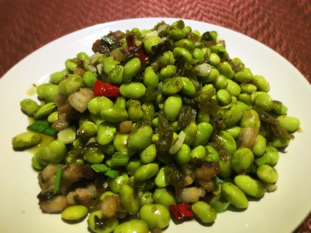 毛豆炒咸菜,下饭菜~