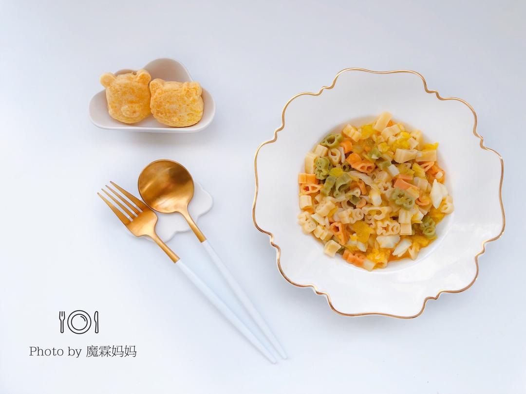 🍱鳕鱼黄金意面+胡萝卜肉松大米糕