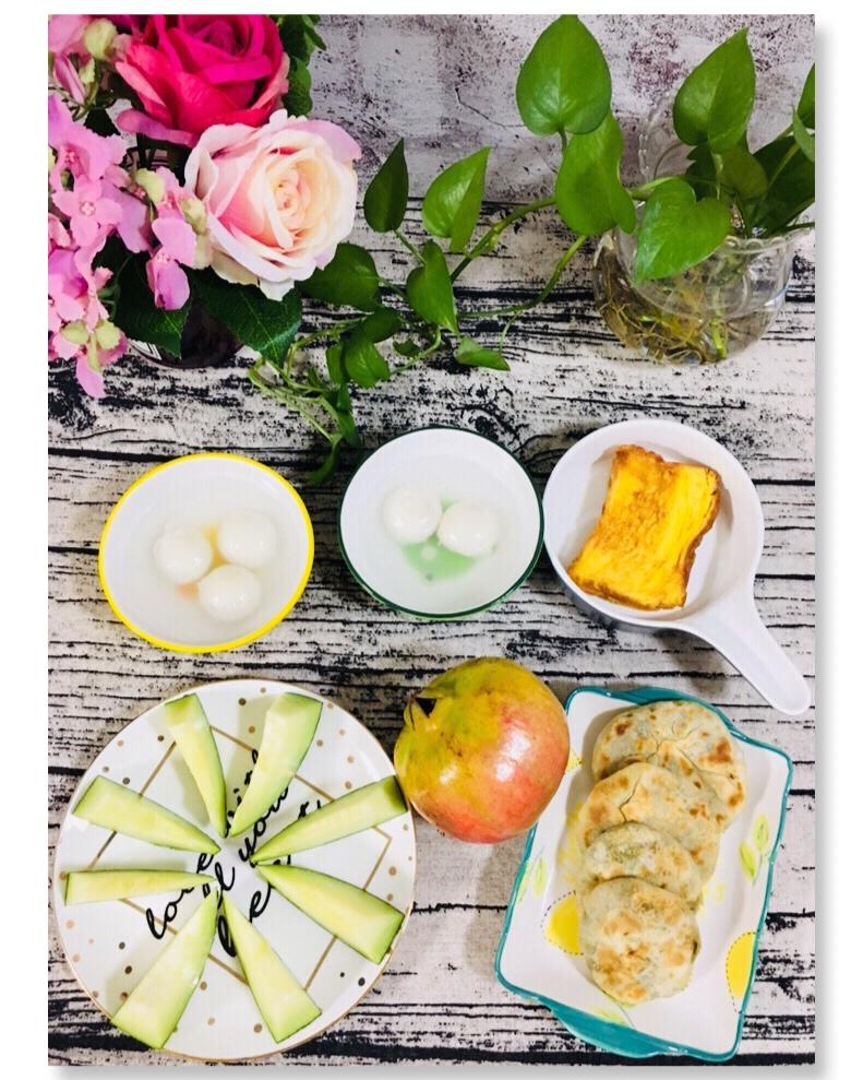 手机用户2635_h0oy 做过 早餐•2018年9月11日 秋已入心,新的一天,新的开始,各位出门记得添衣。早安[咖啡]早餐:汤圆 千叶吐司 蜜瓜 还有昨晚的馅饼,儿子超级爱吃的鸡蛋韭菜馅[坏笑] #早餐•2018年9月11日# 2018-09-11