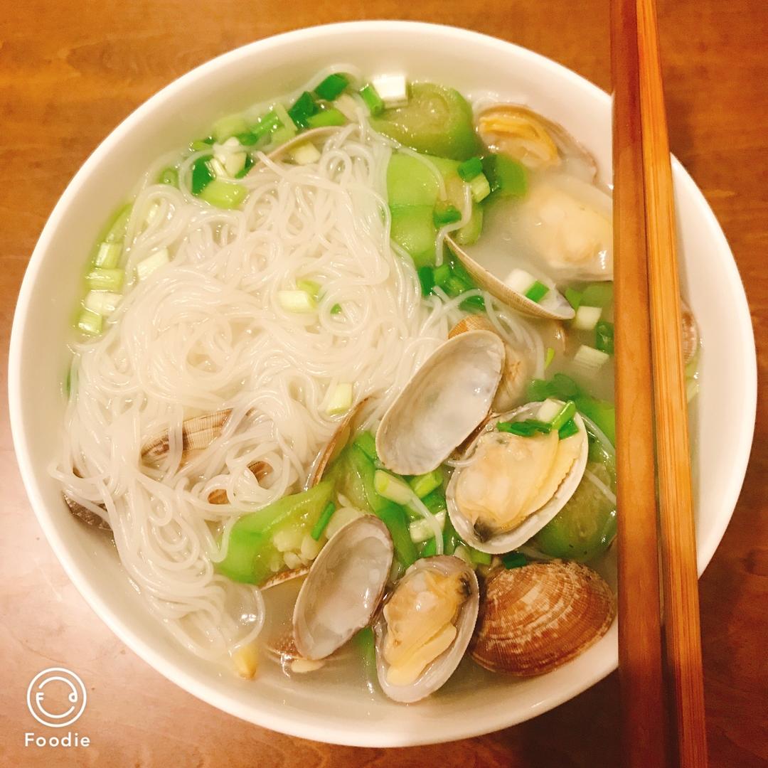 丝瓜花蛤汤榨面Yummy!