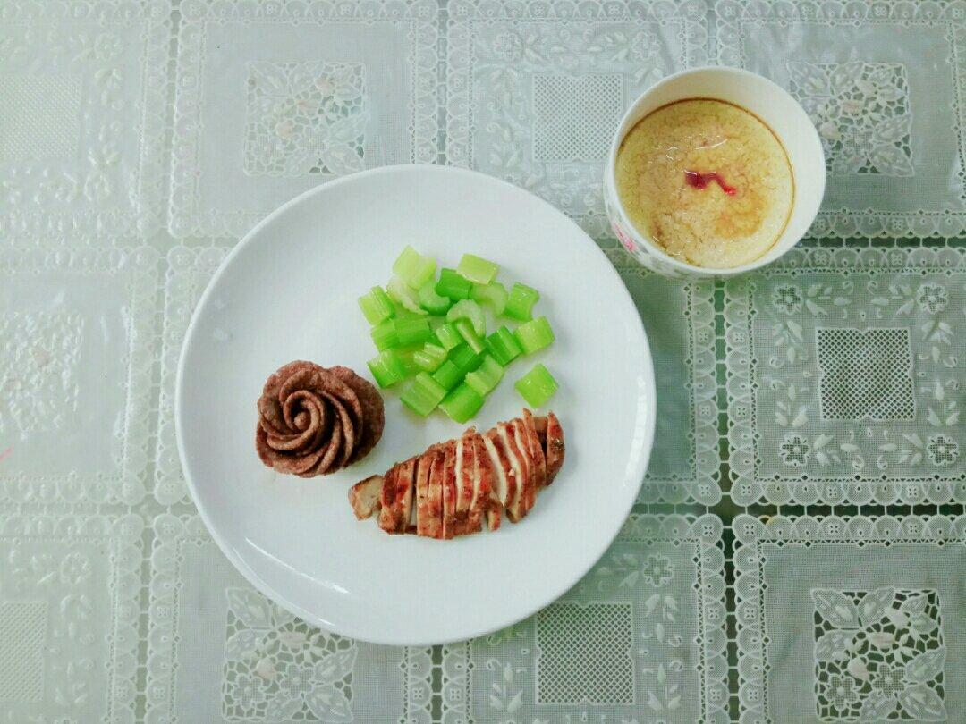 黑麦馒头、鸡胸肉、芹菜、水蒸蛋