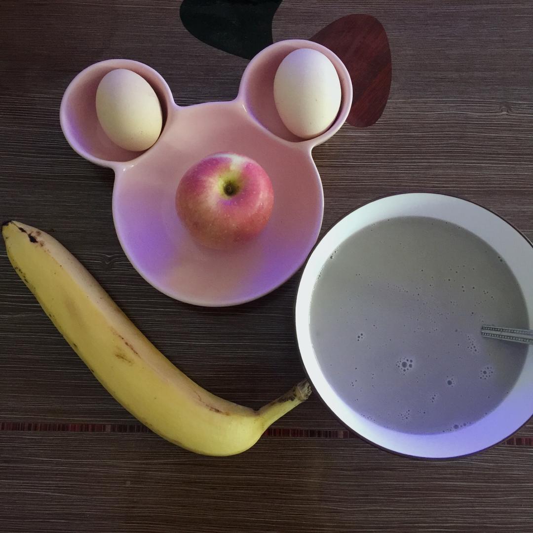 草莓喵可颂w 做过 早餐•2018年10月3日 【一人食】黑芝麻核桃巴旦木豆浆&鸡蛋🥚&苹果🍎&巴拉拉🍌(世界枣安❤️ #早餐•2018年10月3日##Bon appétit##给你力量的食物# 2018-10-03