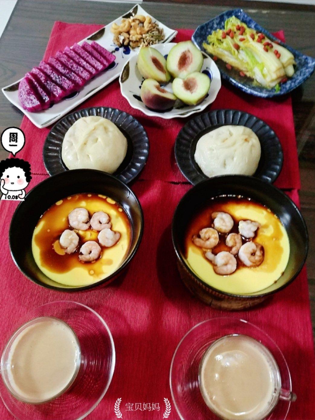 虾仁蒸蛋 清炒娃娃菜