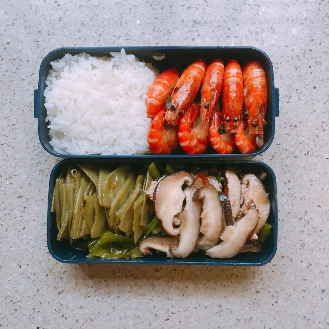 鲸鱼_dhs4 做过 晚餐•2018年10月14日 #晚餐•2018年10月14日#懒惰的小仙女上线了今天的便当是中午的剩菜~老妈烧的 米饭➕糖醋虾➕扁豆➕芹菜➕香菇~饭盒太小了又不保温 考虑冬天重新换一个 2018-10-14