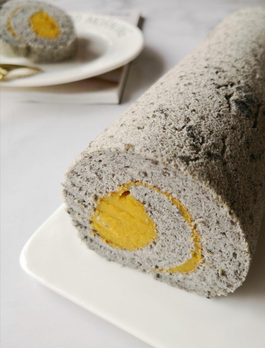 养生系蛋糕卷,散发着浓浓的芝麻味,吃起来还有糯叽叽的芋泥,香滑软糯不甜腻~