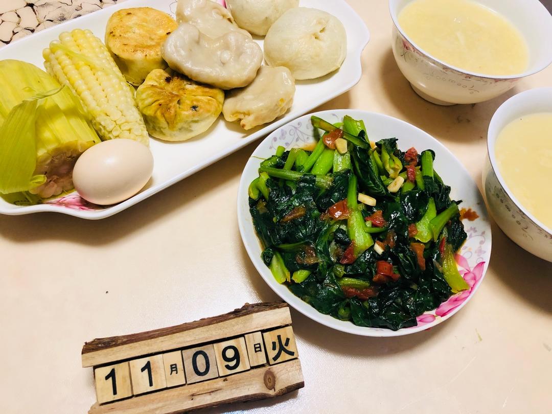荷语微光 做过 早餐•2018年11月9日 20181109南瓜包子 水煎包子 野菜包子煮玉米 煮鸡蛋 清炒小白菜杂米粥#早餐•2018年11月9日##早餐打卡##早!早!早!吃早餐…##给早餐添点料# 2018-11-09
