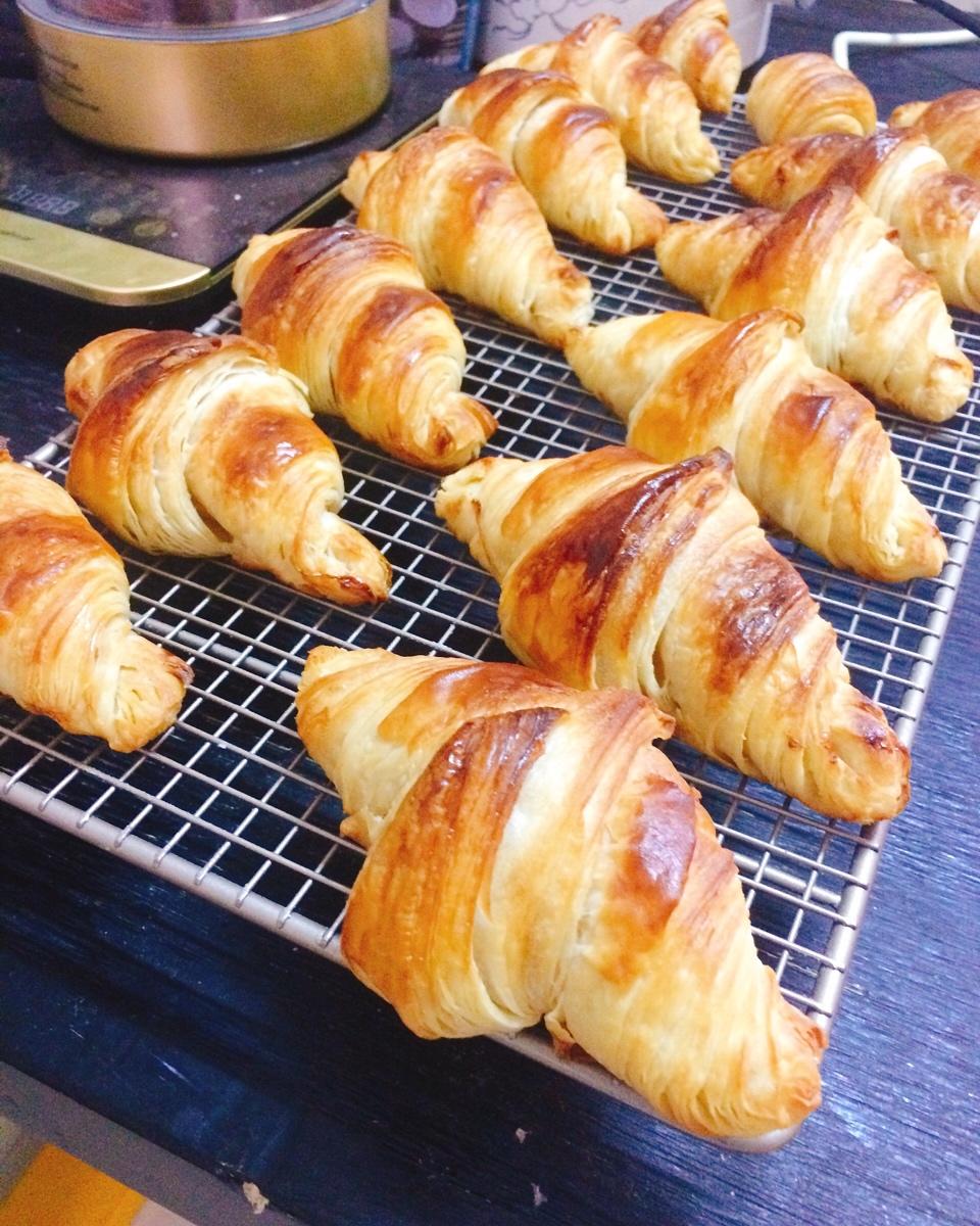 没头像很正常 做过 晚餐•2018年11月24日 天气转凉,想到应该可以做可颂,昨天做了一次,发过了不说,还多折了一次,烤出来外形组织和味道都不行😑。今天又做了一次,3次三折,不过太久没练,手速不行,还是有些混酥😴不过外形算是合格了,下次应该再冷些才会做,广东20度左右的温度还是有些高呢!#晚餐•2018年11月24日##爱上面包##下午茶# 2018-11-24