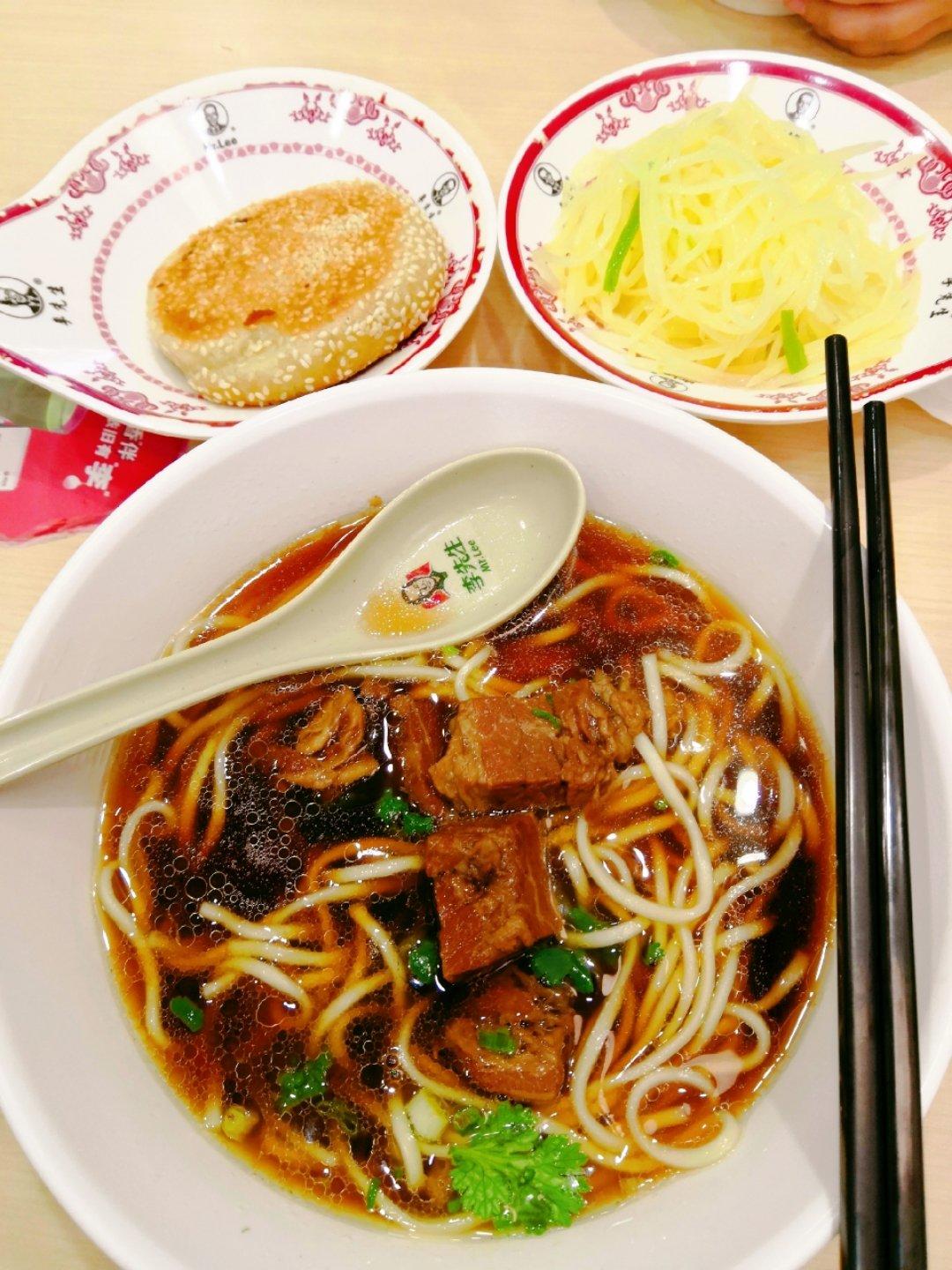 李先生牛肉面,凉拌土豆丝,五香小烧饼