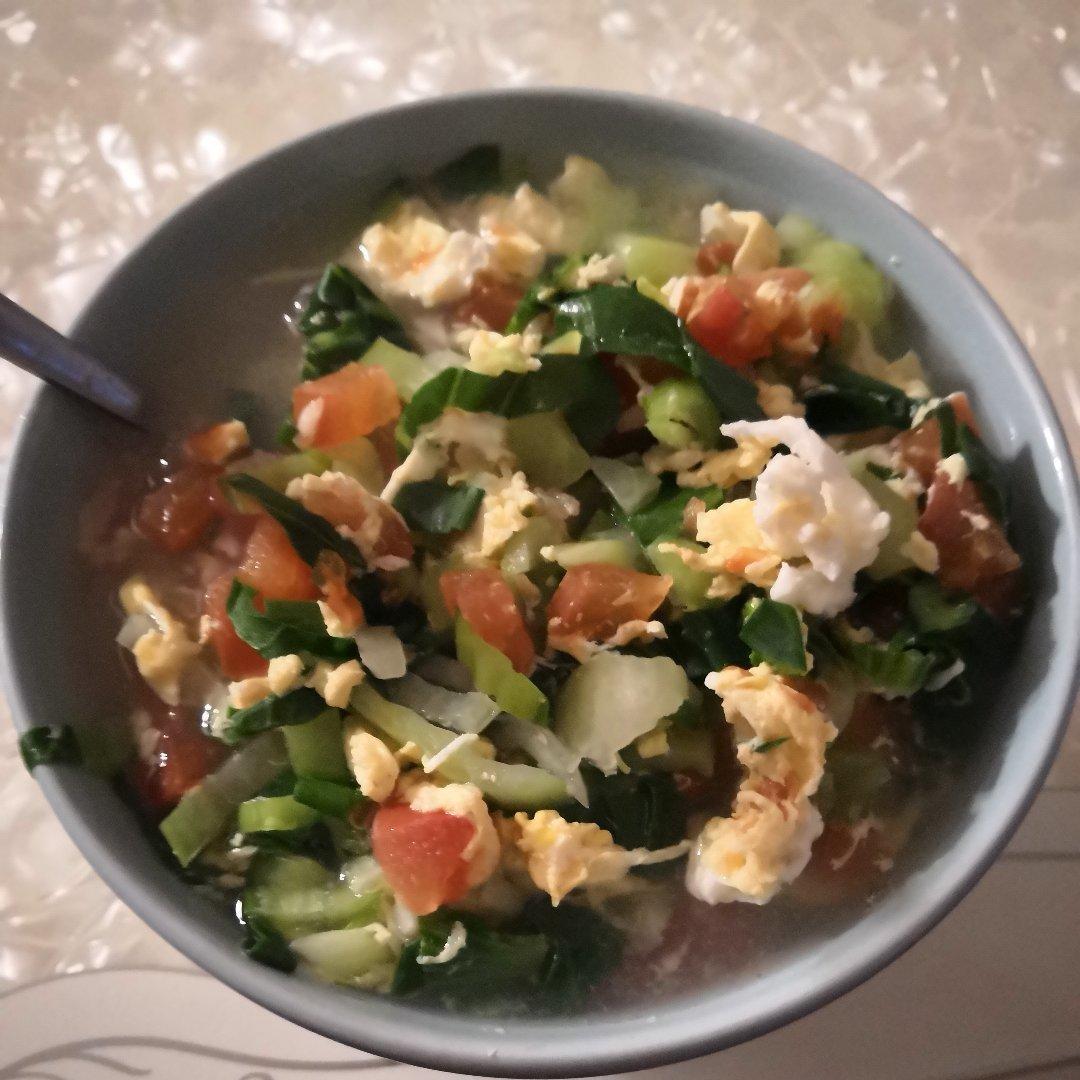 西红柿鸡蛋青菜糙米汤饭,加油