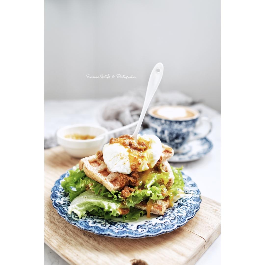 一只有猫病的Sunsun 做过 完美水波蛋 蛋瀑走一个!最后剩了一个全麦厚吐司,本来留着做别的,懒……就直接华夫饼机压了脆脆的蘸酱吃!#早餐•2019年1月15日##我想用镜头记录温暖##那些轻卡,那些爱(˶‾᷄ ⁻̫ ‾᷅˵)# 2019-01-15