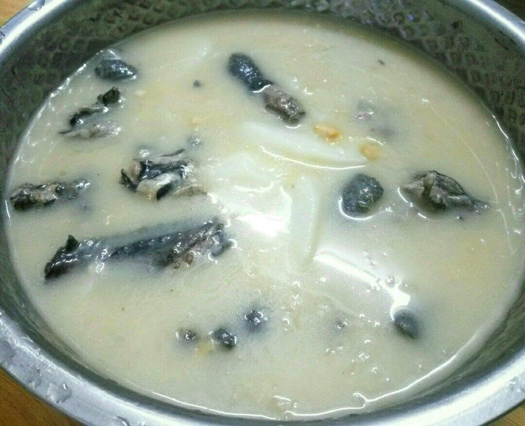 3、加入山药、银耳、米酒 ,加盖小火焖煮15分钟。最后三分钟,加入泡好的枸杞(这次枸杞没有了😓)