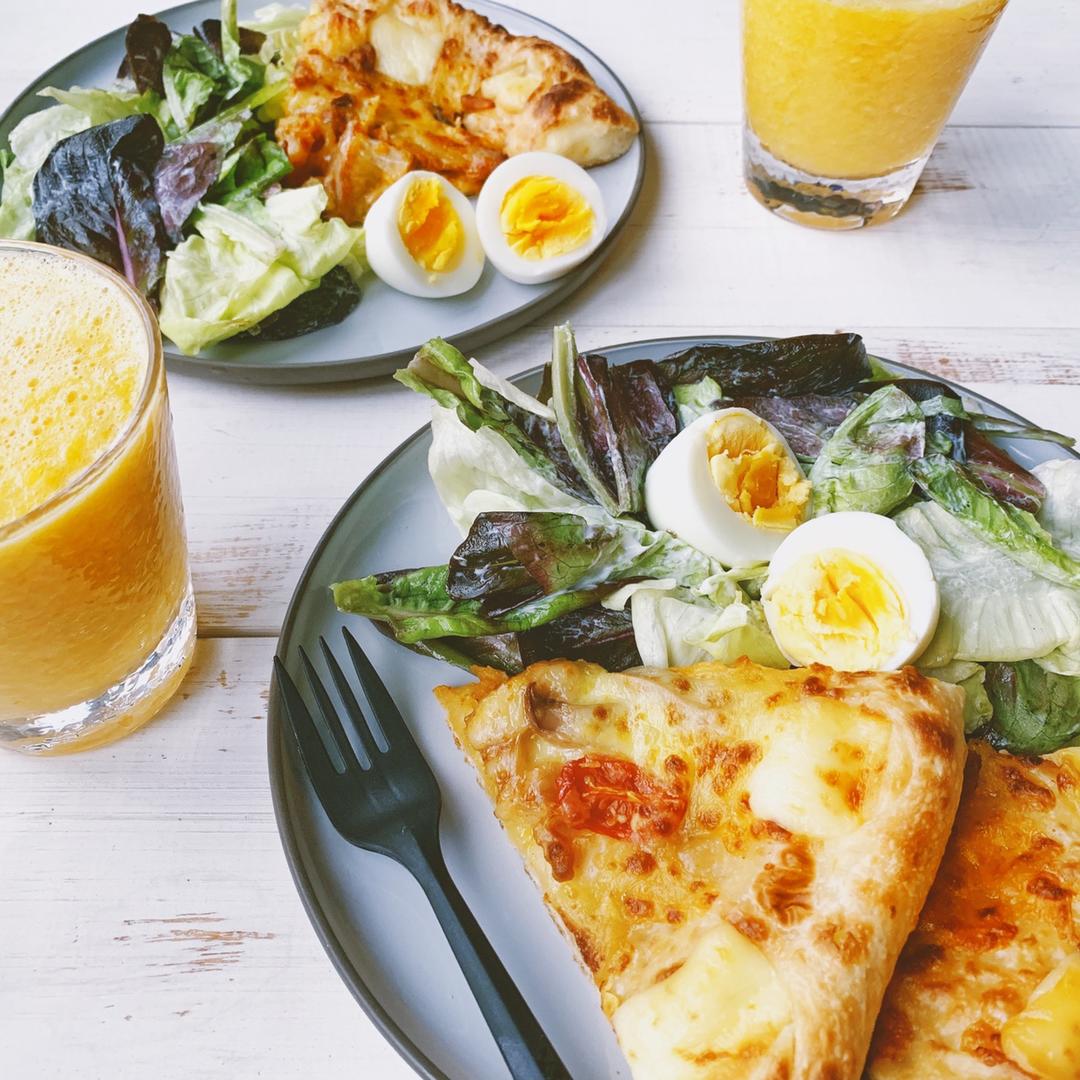 abbie陪你好好吃饭 做过 早餐•2019年2月14日 前几天必胜客买一送一,忍了3天,天天说不吃快餐不吃垃圾食品终于还是昨天没忍住。然后2个大披萨当然吃不完。今早把披萨复热了下,拌了个奶油生菜沙拉,煮2个白煮蛋,再用3个大甜橙打了橙汁。吃得饱饱的!#早餐•2019年2月14日# 2019-02-14