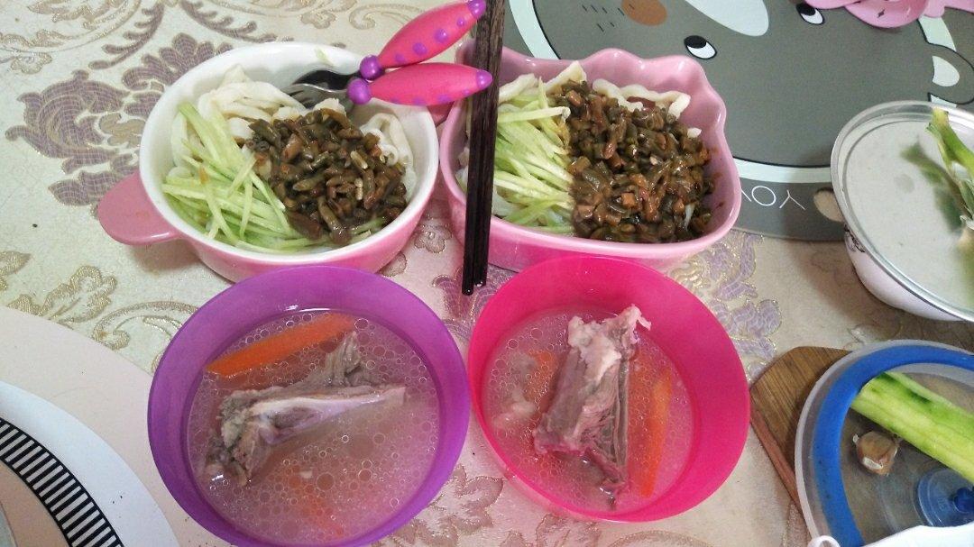 豇豆炸酱面,羊排胡萝卜汤