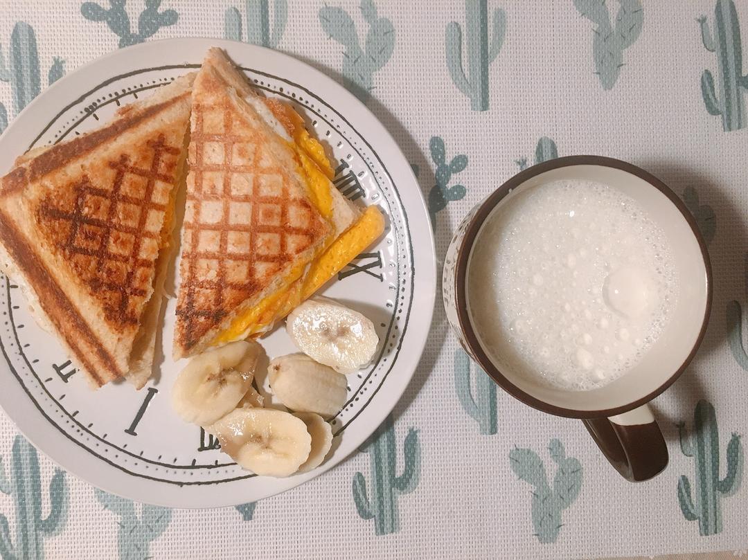☆今日早餐——三明治(香蕉+煎蛋+奶酪片,牛奶
