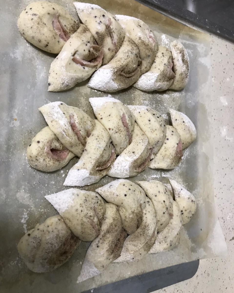 “不藏私面包匠人”推荐的适合新手的麦穗面包,喜欢这个造型,咸味的里面卷了培根。很好吃。