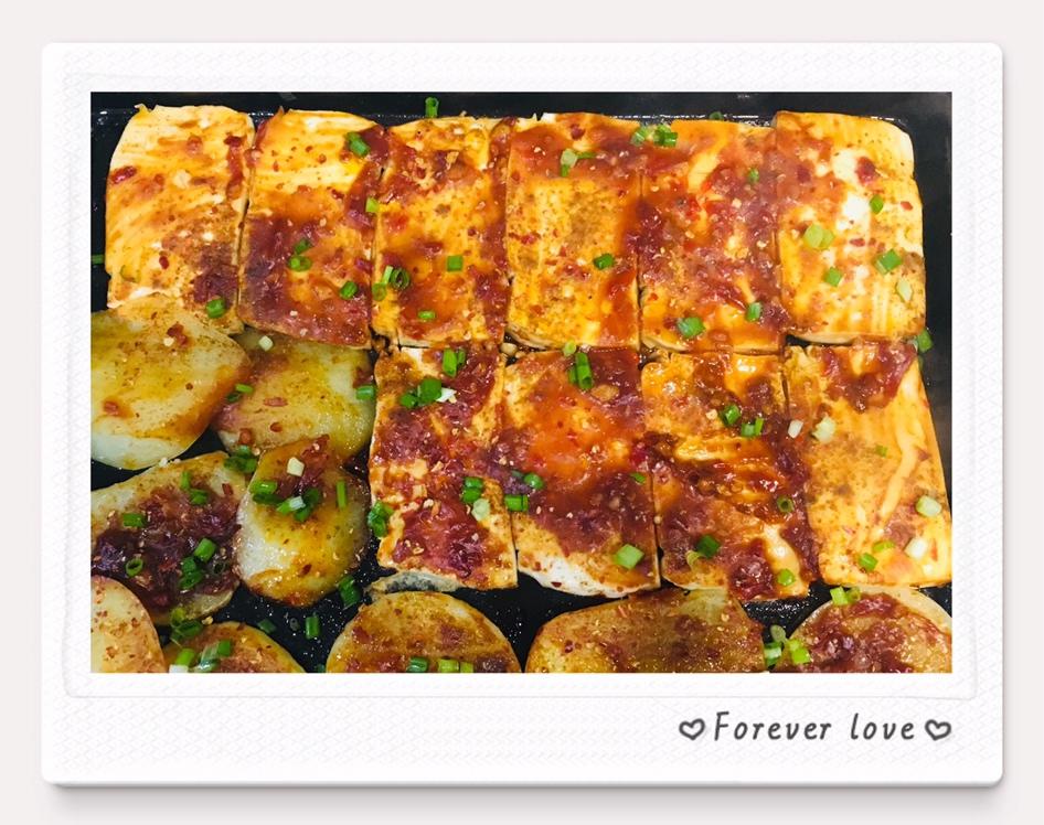 今天晚上烤了豆腐和土豆,辣辣的,挺好吃的!😜记录了菜谱