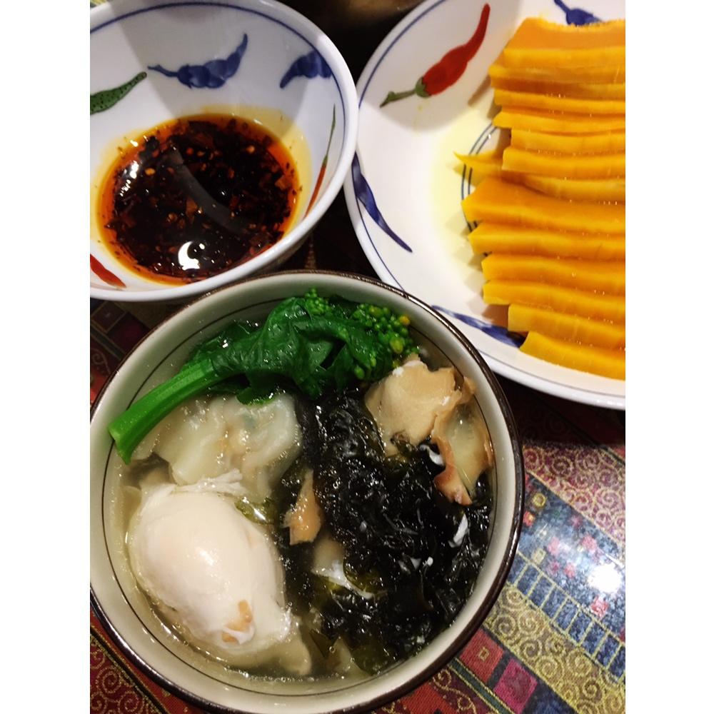 野葱猪肉混沌+蒸南瓜