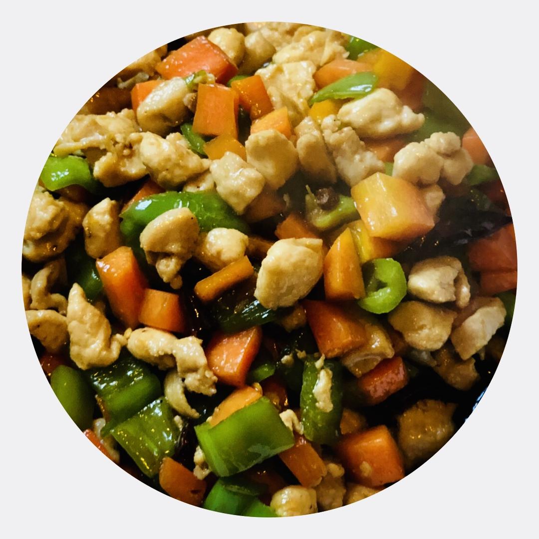 宫爆鸡丁、鸡米芽菜、白水儿菜
