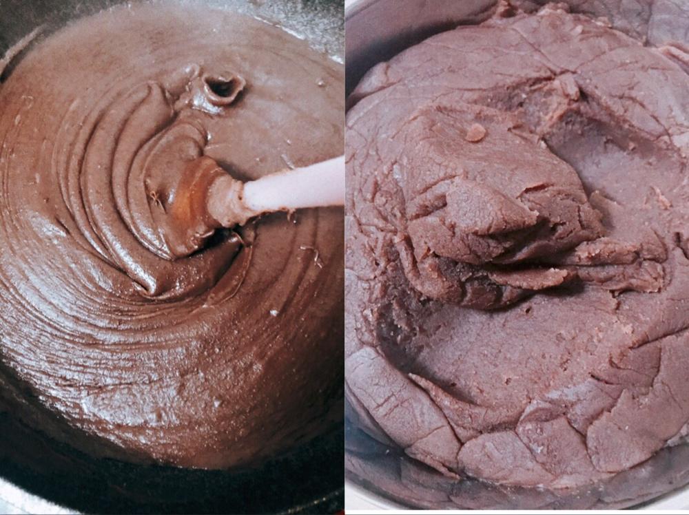 爱乐甜品 做过 红豆沙馅 | 减糖减油版 深夜炒制了红豆沙,用破壁机打的很细腻,没有炒的那么干,简单抱团,刚炒好,还未晾凉,用保鲜膜贴面铺了两层,期待明天晾凉后的效果,炒制过程很简单,用刮刀不停的搅拌锅底就能轻松避免豆沙冒泡烫到自己,谢谢介绍这么好的配方 2019-03-28