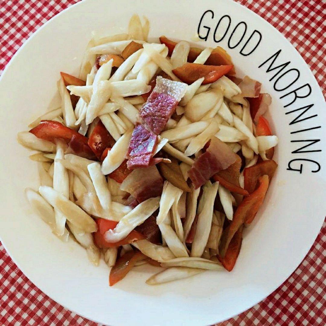 莲伊 做过 2019年03月31日 草芽---云南建水特产,是本地一道稀罕的时令蔬菜,配上大红椒,云南火腿一起炒味道鲜甜。也可以草芽汆肉做成汤也是美味无比。建水人更喜欢用豆腐皮,鲜肉片,草芽汆在米线汤中,那才是真正的三鲜米线😍 2019-03-31