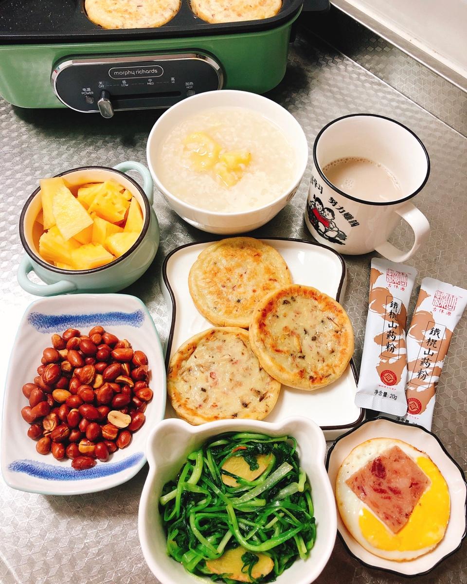 好啦美食-阿木 做过 好啦团 【朝食打卡2019.04.13】板栗红薯粥➕香菇火腿饼➕火腿煎鸡蛋➕蚝油青菜➕花生米➕海南凤梨➕山药粉每一个普通的改变,都将改变普通。因为从决心变得更好那一刻开始,我们就已经与一个全新的自己不期而遇。早安☀️#好啦团##家有初中生##早餐早餐# 2019-04-13