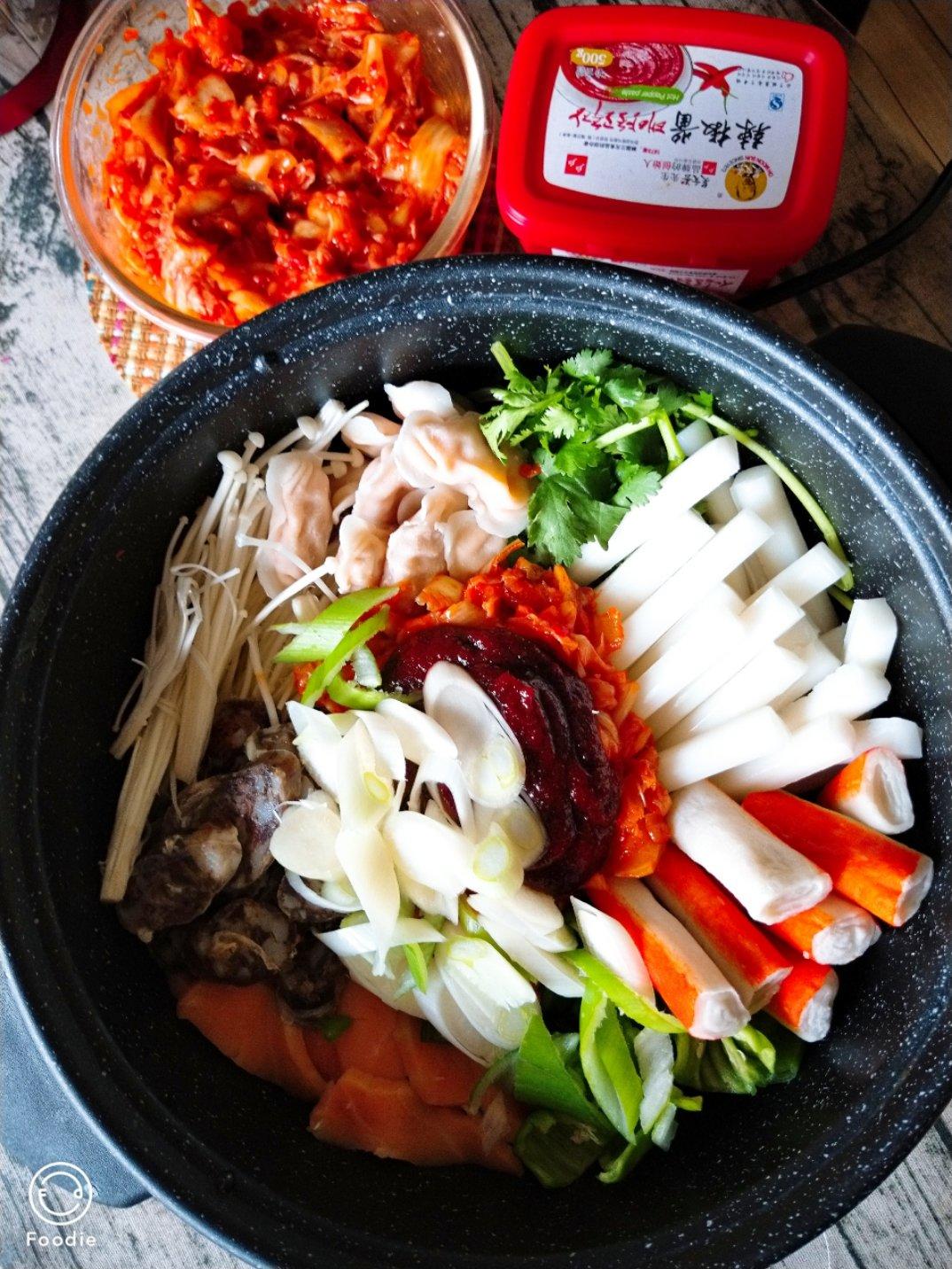 幸福天堂 做过 堂妈教你做部队火锅 用生蚝肉打底煮汤,家里有什么就放什么材料了,所以午餐肉换成了香肠,多加了几片芝士,把面条盛在碗里后,额外再加点辣白菜拌匀,酸甜的汤汁伴着浓浓的芝士香,我婆婆连吃两碗汤都喝得不剩😋🍲🍜🧀 2019-04-19