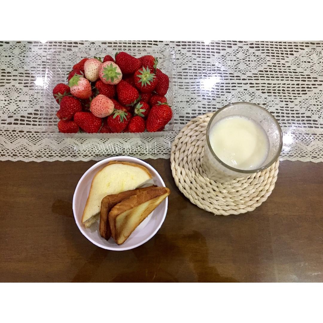 林海眠 做过 早餐•2019年4月20日 #早餐•2019年4月20日#上面的面包烤了一下,下面的面包片没烤,口感天上地下,烤的好吃,于是默默把剩下的都烤了。白草莓的话,吃个稀奇还不错,但从营养角度和口感而言,似乎完全没必要?感恩❤️早安! 2019-04-20