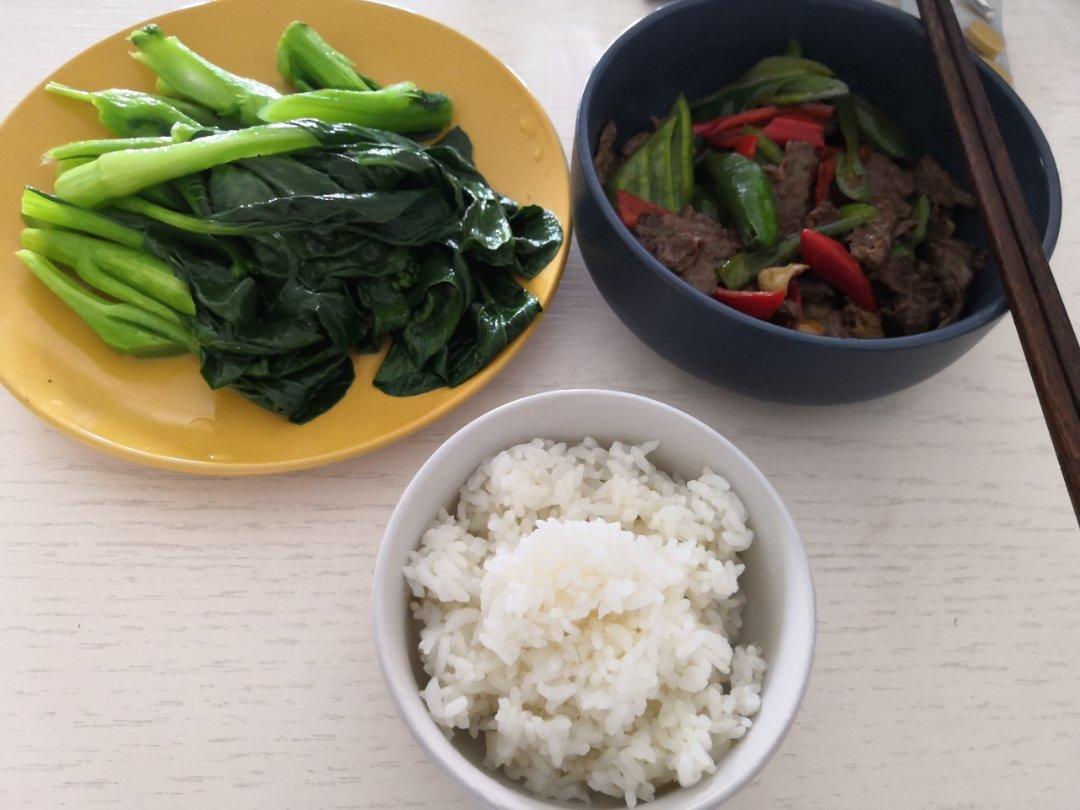 彩椒炒牛肉,油盐菜心