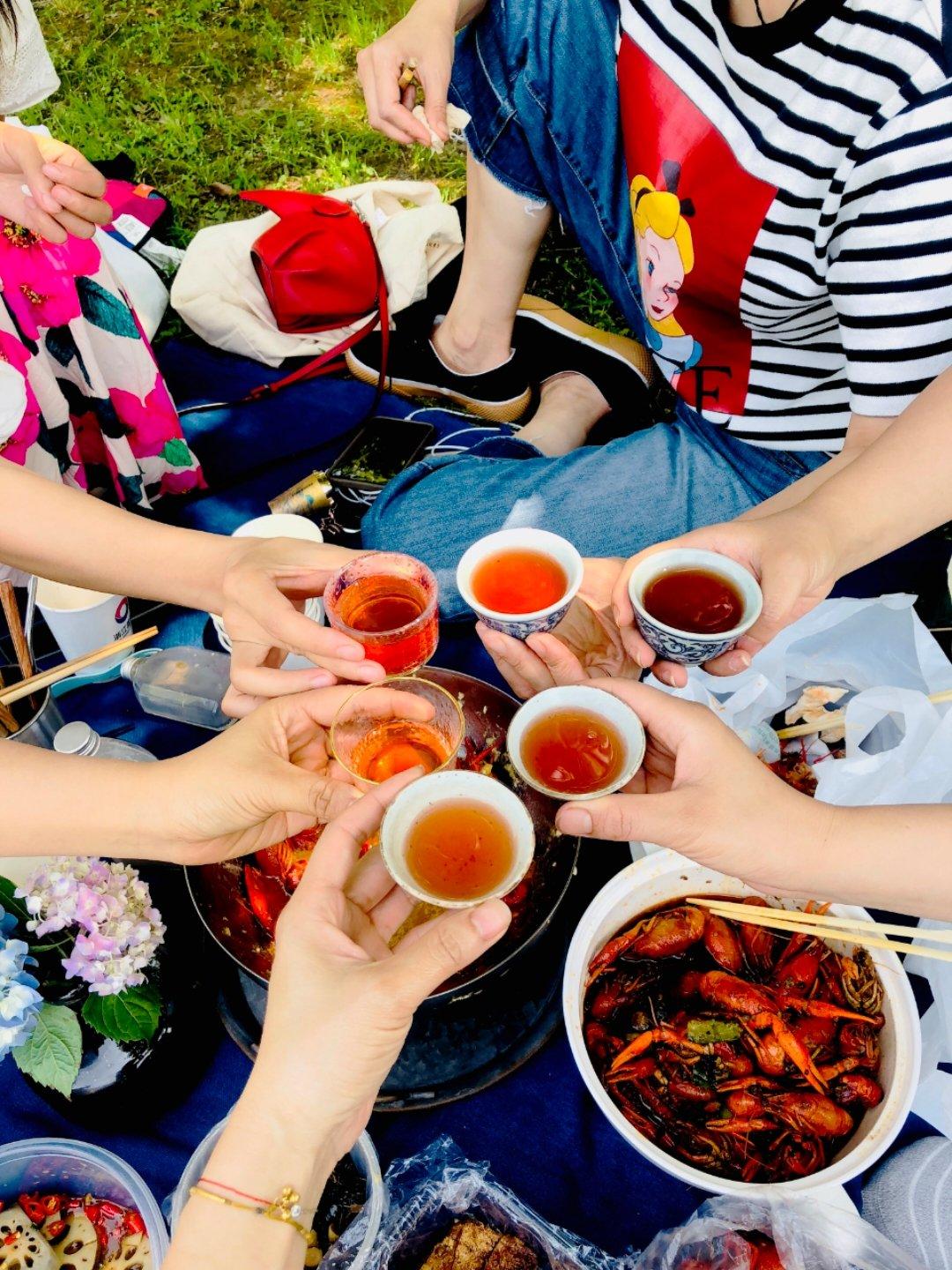 今天我們在野餐啦,草莓酒可以喝了,真的好好喝~~