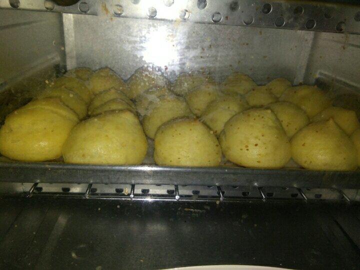 应该是没烤好吧,拿出来就开始瘪了,最后有一排是没瘪的,打了奶油,瘪的竟然也能进去一些,宝宝喜欢吃,