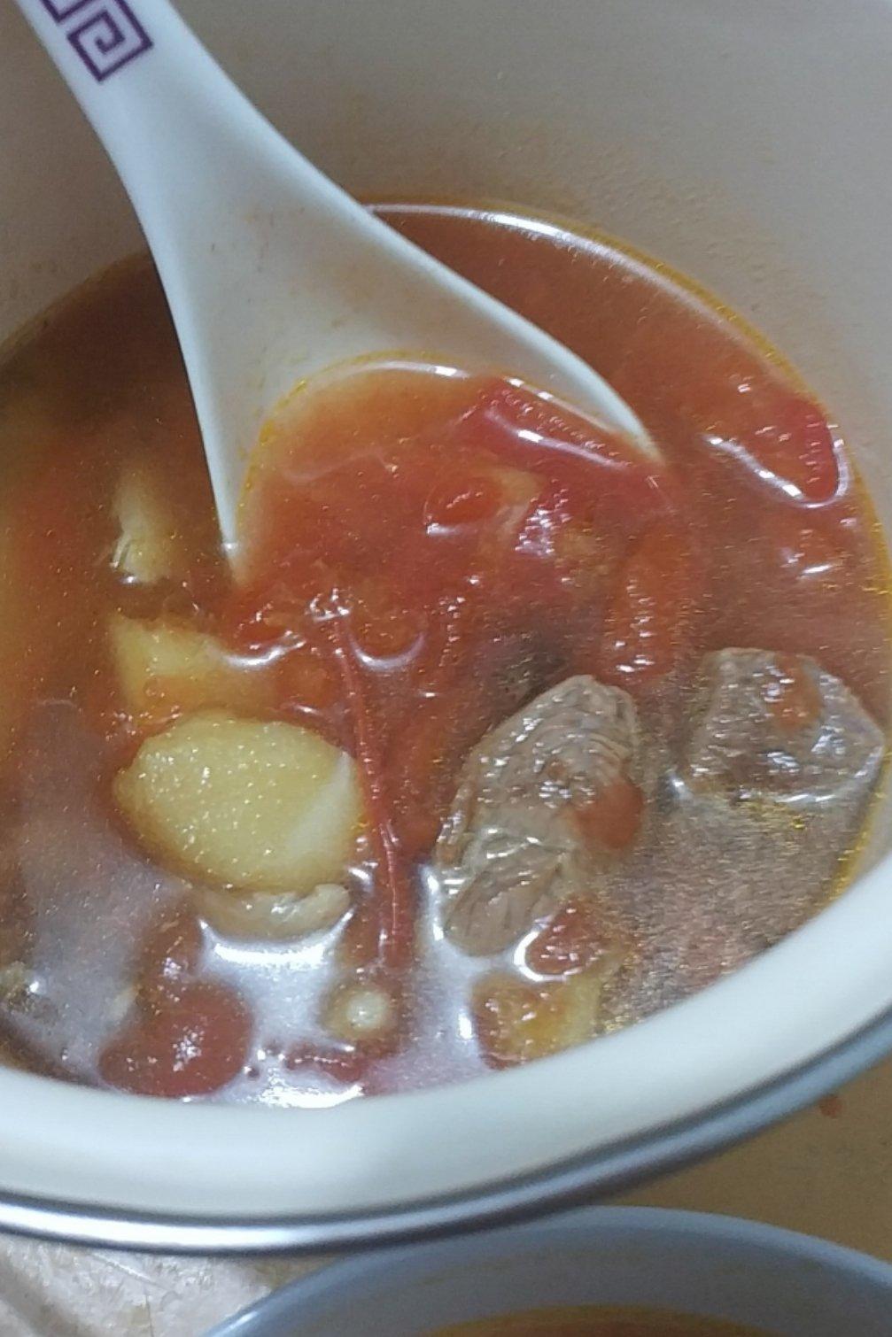 大神养成 做过 2019年05月26日 西红柿软软的1大 2小 肉7两 水 2人份偏满的水量 糖小半勺(瓷勺)【下次 打两人份的肉 水不变 番茄酱2铁勺,其他不变】肉焯水后和花椒炒,然后直接倒锅里再加点半角 姜 蒜瓣 然后豆筋 三档 下次试试不加八角 西红柿的味道不够 2019-05-26