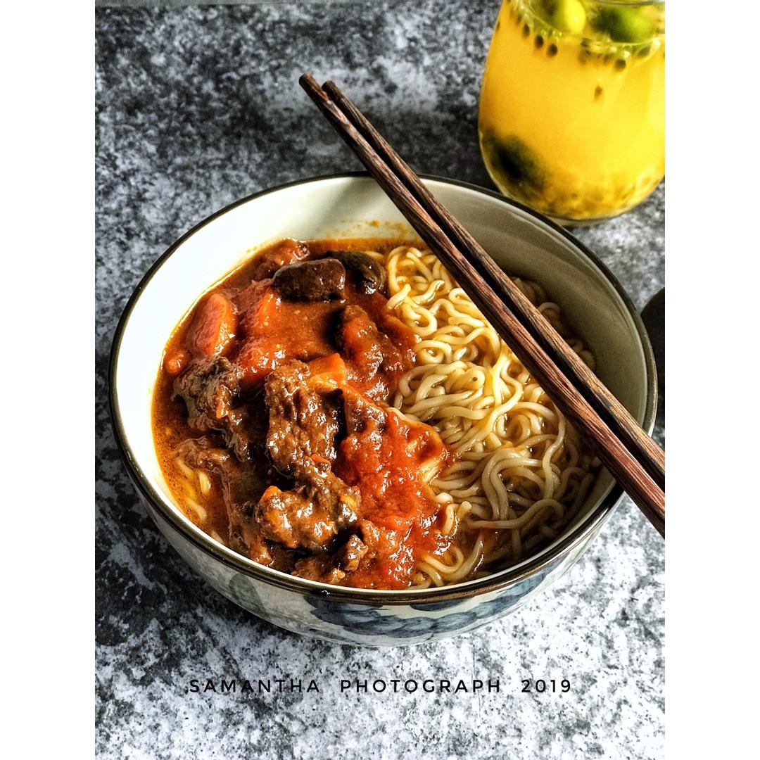昨晚的番茄炖牛肉,今天配面条吃,超开胃~