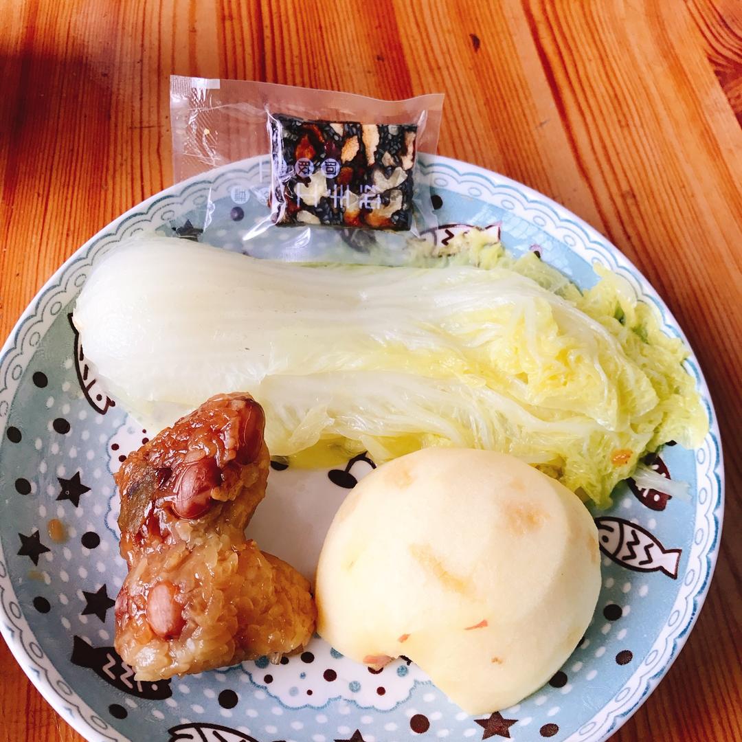 棕子,水灼白菜,苹果