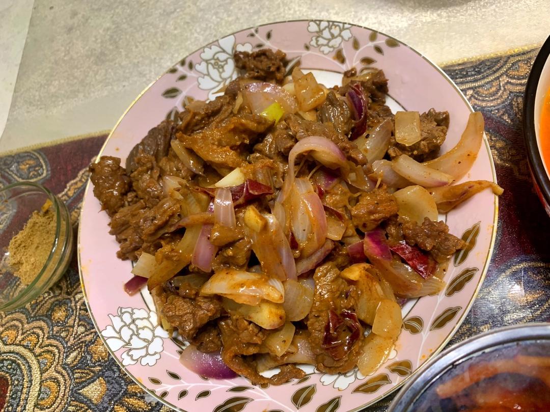 孜然洋葱炒牛肉粒