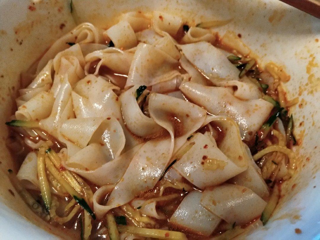 新疆风味凉皮子,和西安口味差不多,不一样的是新疆凉皮汤汁要多一些,更香一些。