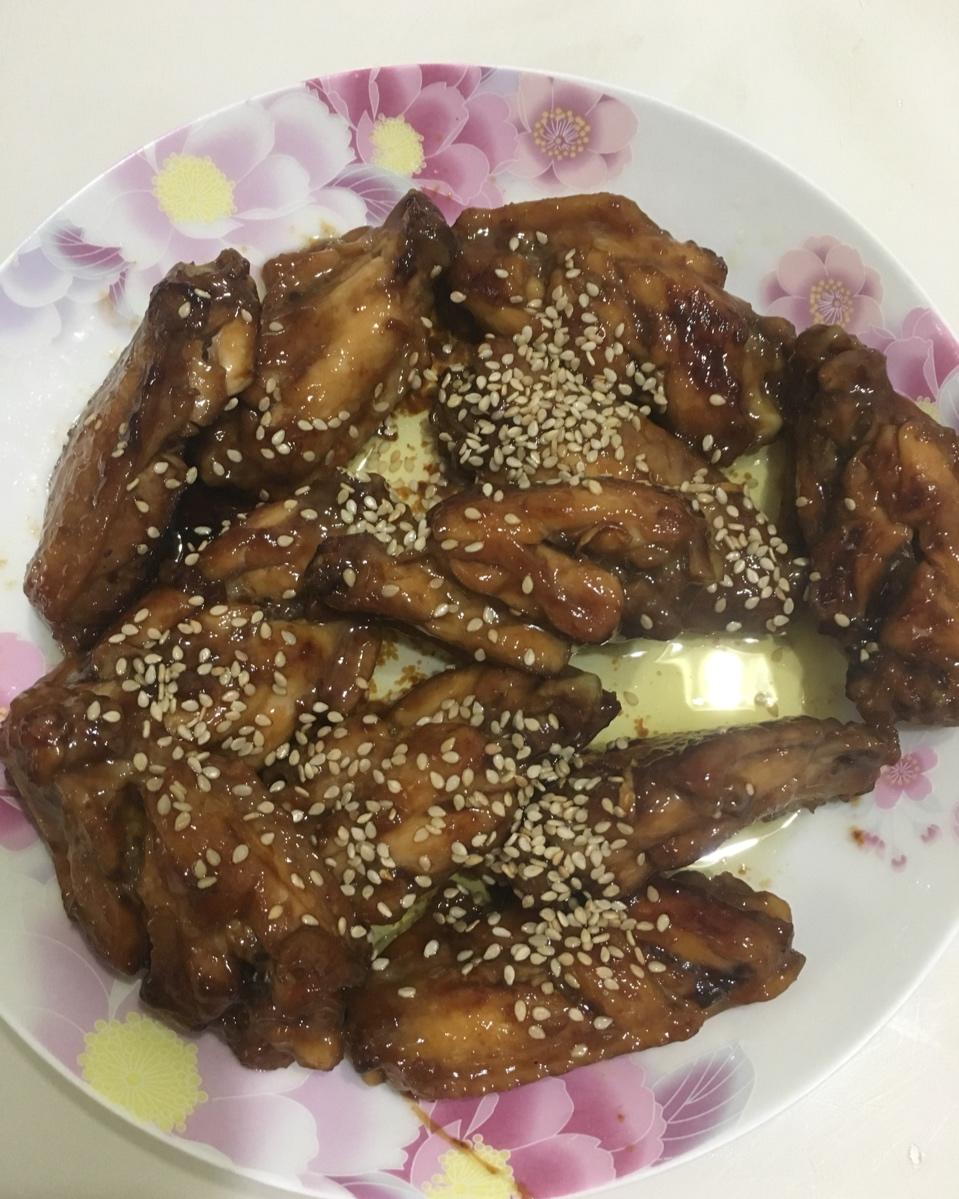 第一次尝试可乐鸡翅,非常成功,不喜过甜,所以把方子里的可乐减半,只用了150毫升。一斤鸡翅11个,配150毫升可乐、刚刚好