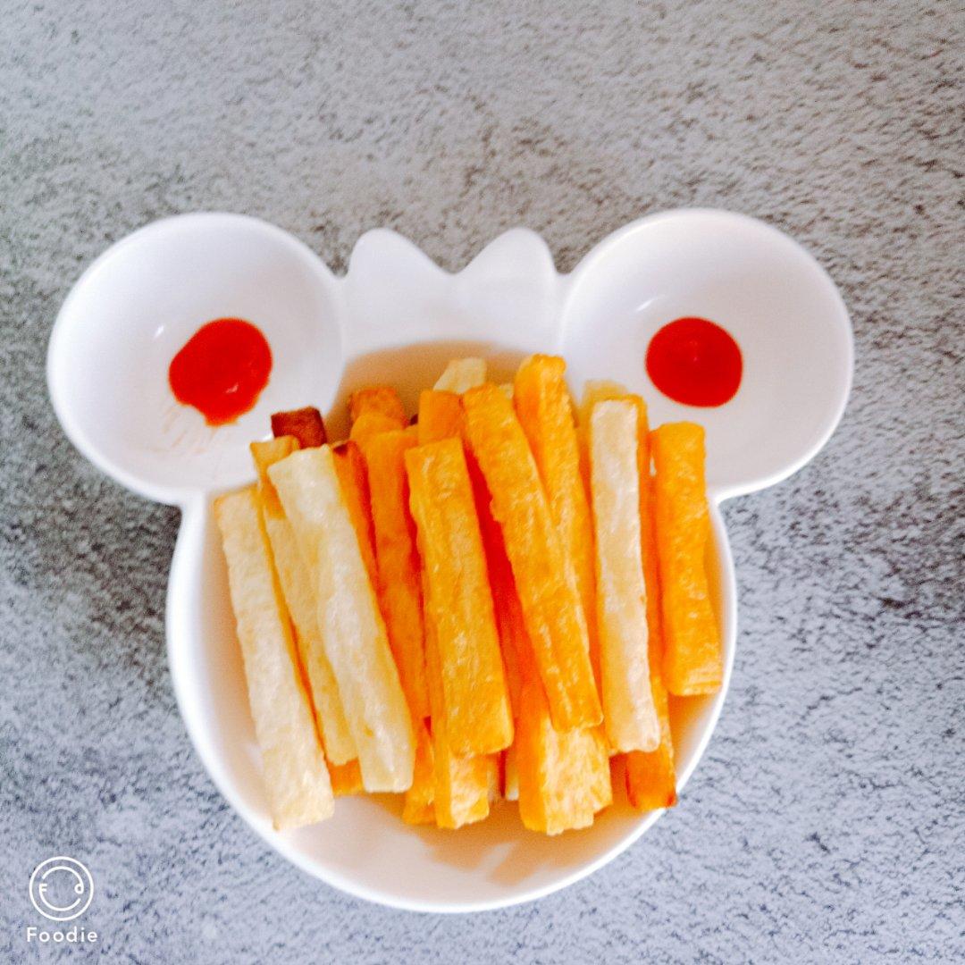 ♥烤箱版薯条,营养健康,土豆和红薯两种,下次再试试紫薯的,女儿说味道不错嘻嘻