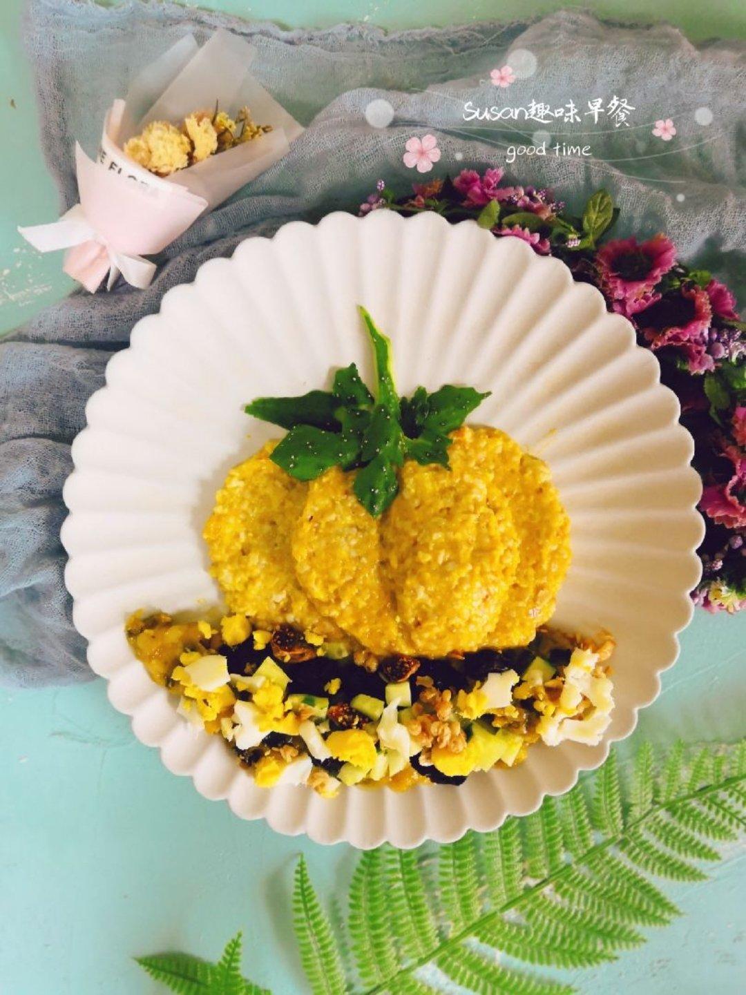 周六早上,随手做个南瓜造型钢切燕麦,随手拍一个过程图。Susan趣味早餐的要义是,给自己最大的满足感,创造的满足感,丰富的视觉满足感,品尝天下美食的满足感。哈哈。