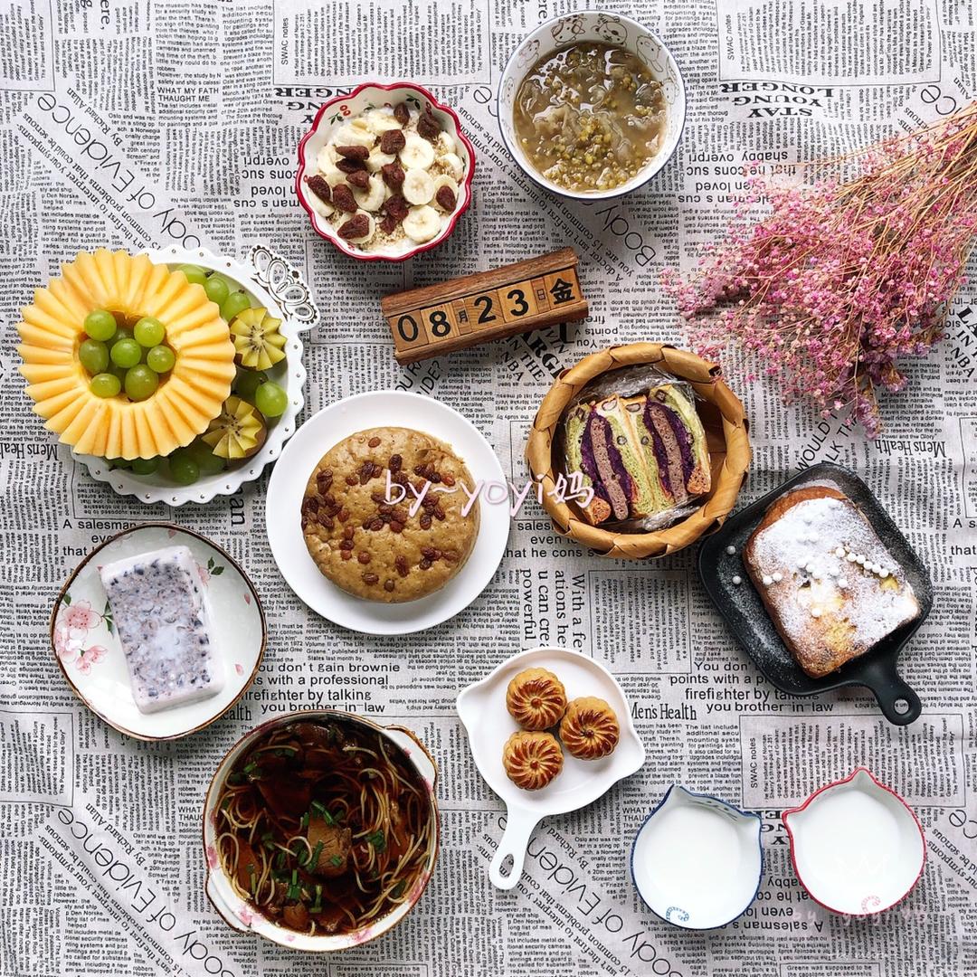 囡囡的yoyi 做过 yoyi妈的早餐 早安(۶•౪•)۶❤٩(•౪•٩)法式厚吐司,牛肉米线,红糖发糕,蔓越莓椰蓉月饼,紫薯牛肉三明治,绿豆银耳汤,酸奶,水果#yoyi妈的早餐##坚持做早饭把日子过成自己想要的模样##早餐•2019年8月23日# 2019-08-23