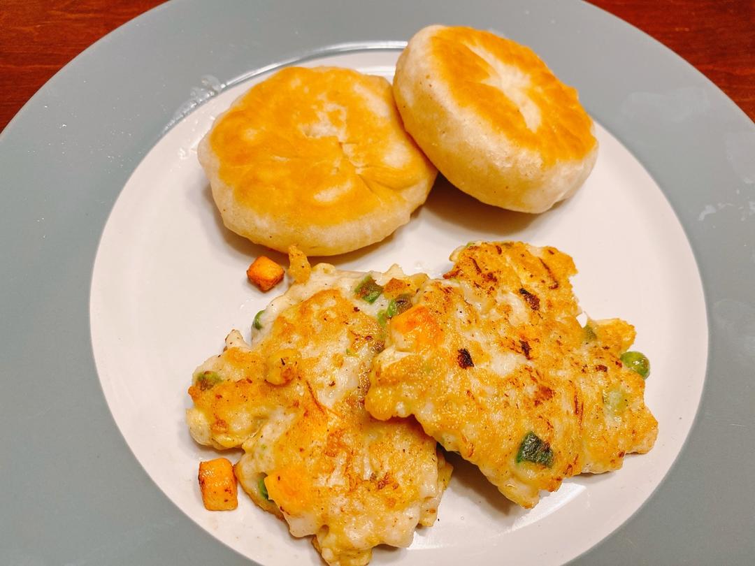 用的自发粉和水,和好面以后醒了20分钟,开始包馅,西葫芦鸡蛋虾仁馅儿饼。很松软,歪果仁第一次吃赞不绝口👍